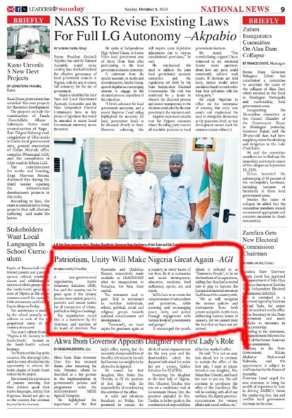 Aspiration for Patriotism, Peace, Unity and Justice in Nigeria.